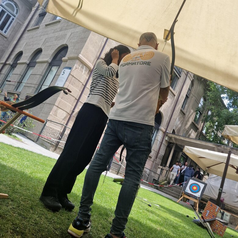 Ci occupiano di formazione continua, utilizzando la disciplina del Tiro con l’Arco, attraverso una particolare attenzione all’ascolto comprensivo della comunicazione e del confronto, per noi essenziale. Offriamo varie attività, dalle più goliardiche a quelle di crescita e rivalutazione personale, con un supporto umano che tuteli ogni gradino o cambiamento. Il nostro punto di partenza è sempre l’Entità con la quale condividiamo l’esperienza di crescita, partendo da questa e non dal puro e sterile tecnicismo sportivo. Il nostro Piano d’Offerta Formativa si svuluppa con principi legati alle 4 Macro Aree: visualizzazione, destrezza, movimento e forza. In questo modo, con un aspetto di coscienza individuale, che ha certamente una sfumatura nei fondamenti delle arti marziali, andremo ad allenare abilità interne ed esterne aiutati da principi di Qi Cong (abilità interne: armonia col tutto, lentezza, immobilità, rilassatezza, e Ninjutsu (abilità esterne: precisione, velocià, mobilità, potenza), così da elevare attenzione, correttezza e soprattutto coscienza personale del gesto atletico. Ci rapportiamo con qualunque fascia di età, progettando lezione e eventi sulle basi delle competenze di ogni fase di crescita, che sia primaria, adolescenziale, adulta o anziana. In questo modo verrà, ogni volta, delineata l’identità CLASSE.